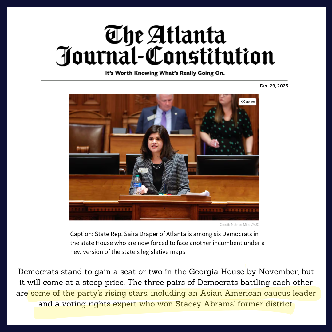 In my first Redistricting Recap, I shared that plaintiff voting rights advocates objected to the maps passed during the Special Session earlier this month, hoping to get them tossed. On 12/28, we got the court’s decision: All three maps– the state house, state senate, and Congressional maps– will stand for now. Even though plaintiffs may choose to appeal the court’s decision, as a practical matter, the Republican-drawn maps passed during the 2023 Special Session will be the maps Georgia uses for the 2024 election cycle.